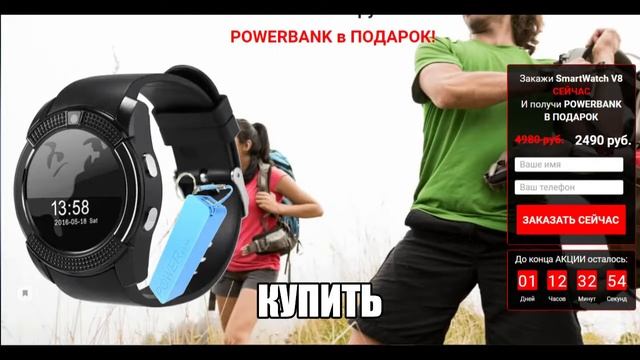 Умные часы Smart Watch V8 и power bank в подарок