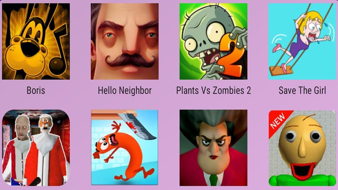 Hello Neighbor Act 2,Santa Granny,Scary Teacher,Save The Girl,PvZ 2,Baldi's Basics,Sausage Run,Bori