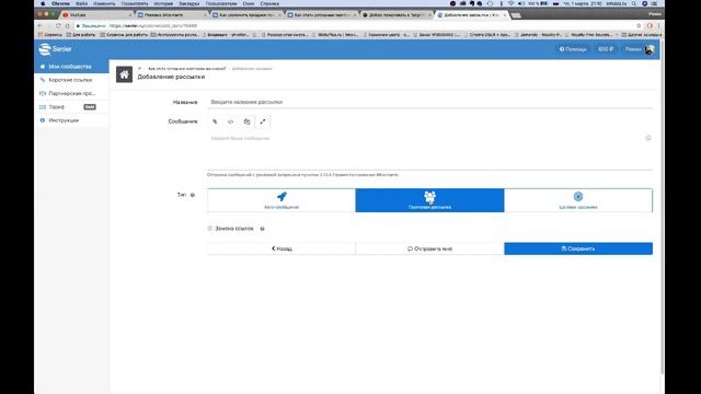 5 Создание мгновенных писем