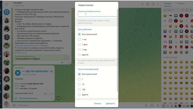 Как создать вступительную ссылку в Telegram