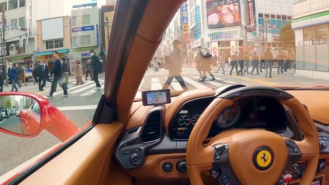 サラリーマンで賑わう新橋をフェラーリでドライブ