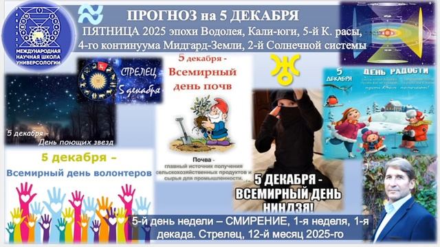 ПРОГНОЗ на 5 ДЕКАБРЯ, ПЯТНИЦУ, день СМИРЕНИЯ, 2025, эпохи Водолея, 5-й К.расы 2-й Солнечной системы