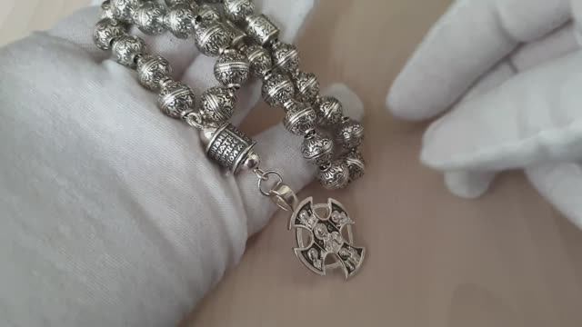 Четки из серебра православные 05/30 - оригинальные православные четки Четки собраны из тридцати серебряных бусин на прочную серебряную цепочку с двумя разделительными бусинами. Красивый тисненый орнамент на бусинах и оригинальный литой крест с образами - отличительная особенность этих серебряных четок. Все серебряные элементы с чернением/оксидированием. Красивая модель серебряных четок с отличным соотношением цены и качества. Изделие гармонично смотрится, практично и долговечно, подчеркивает индивидуальность. Прекрасный выбор для презента или подарка православному христианину! Более подробная информация, технические параметры, детальные фото на странице сайта Четки.су - https://www.chetki.su/kat/1998/ W/A, Tel +7 987 055 0500