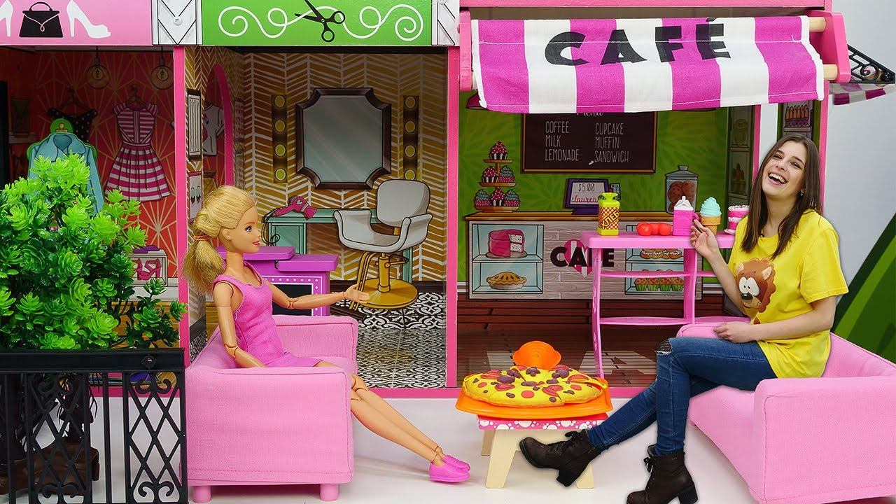 Кафе Барби и соревнование по поеданию пиццы - Тойклаб Маша помогает сделать пиццу - Видео про кукол