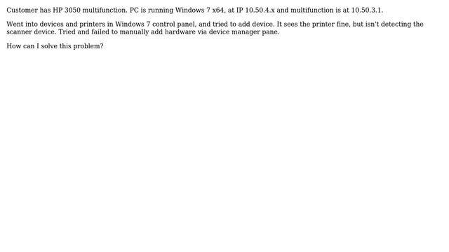 Windows 7 vs. HP 3050 multifunction, adding scanner device on network IP