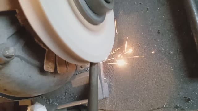 опытные товарищи по цвету искры, наличию звёздочек могут определить металл. Искра темно-красная у стали попроще, ярко-оранжевая у углеродистой. у титана и его сплавов она белая! и более яркая, чем у стали...