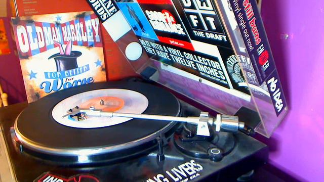 Old Man Markley "Science of Myth" off the "For Better For Worse" 7inch on Fat Wreck Chords. 7" on Red/White/Blue splatter vinyl.