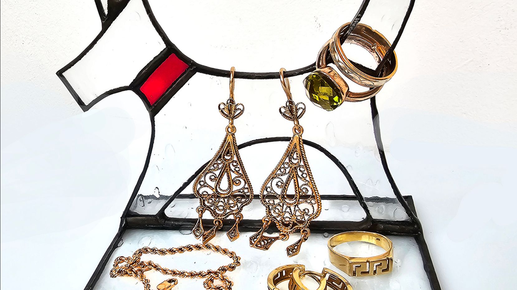 Собака в технике тиффани - маленький витраж для украшений