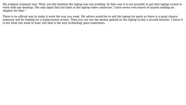 Connect monitor of a defective laptop to desktop PC Helpful? Please support me on Patreon: https://www.patreon.com/roelvandepaar With thanks & praise to God, and with thanks to the many people who have made this project possible! | Content (except music & images) licensed under CC BY-SA https://meta.stackexchange.com/help/licensing | Music: https://www.bensound.com/licensing | Images: https://stocksnap.io/license & others | With thanks to user Troggy (superuser.com/users/2553), user RJFalconer (superuser.com/users/4515), user Jared (superuser.com/users/940), user fixer1234 (superuser.com/users/364367), and the Stack Exchange Network (superuser.com/questions/23781). Trademarks are property of their respective owners. Disclaimer: All information is provided "AS IS" without warranty of any kind. You are responsible for your own actions. Please contact me if anything is amiss at Roel D.OT VandePaar A.T gmail.com