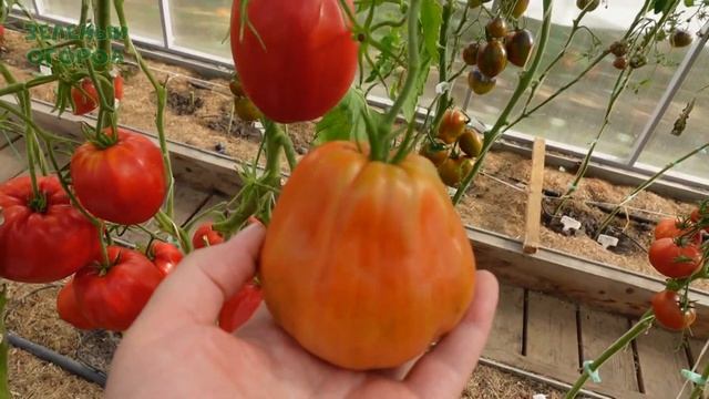 Томат КОЗИЙ МЕШОК (Goat Bag) - коллекционный сорт (Италия), среднеспелый, индетерминантный, высотой до 200см в теплице. Куст крепкий с прочными стеблями и густой листвой простого типа, занимает много места. Кисти простые, не заламываются, в которых 2-5 плодов, весом 300-700г и более. Плоды в виде огромных продолговатых бочонков (отдельные округло-плоской формы с ребрами), ярко-красного цвета. Мякоть плотная, сочная, не водянистая, малосемянная, маслянистая. Кожица эластичная, не растрескивается. Вкус яркий с хорошим балансом сладости и кислинки, настоящий классический. Назначение салатное. Урожайность выше среднего, длительное плодоношение. Семена можно купить в нашем МАГАЗИНЕ СЕМЯН: https://www.green-ogorod.ru **** ЗЕЛЕНЫЙ ОГОРОД в социальных сетях: ВКонтакте - https://vk.com/zeleniy_ogorod Одноклассники - https://ok.ru/group/56254552342683 Дзен - https://dzen.ru/green-ogorod.ru Телеграм - https://t.me/zeleniy_ogorod Rutube- https://rutube.ru/channel/23907302/ #томаты #сортатоматов #советы