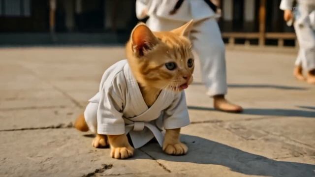 Над котёнком издеваются. Мама кошка отправляет его на занятия по карате.