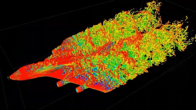 This is a quick FluidX3D CFD simulation of the Boeing 747. Re=50k, eye-watering 912×1824×456 resolution, 100k time steps, 6h34min compute+render time on an A100 40GB GPU. Rendering: velocity-colored Q-criterion at Q=0.00002. My FluidX3D code is standard lattice Boltzmann method (LBM), D3Q19, BGK collision, simple mid-grid bounce-back boundaries. For the box walls I use equilibriium boundaries. My implementation is ultra (memory) efficient with Esoteric-Pull streaming and FP16 memory compression, reducing memory demand to 55 Bytes/node, 1/3 of other FP32 implementations. This way I can get extremely large resolution even on a single GPU with limited memory capacity. Esoteric-Pull: https://doi.org/10.3390/computation10060092 FP32/FP16 mixed precision: https://www.researchgate.net/publication/362275548_Accuracy_and_performance_of_the_lattice_Boltzmann_method_with_64-bit_32-bit_and_customized_16-bit_number_formats FluidX3D: https://doi.org/10.15495/EPub_UBT_00005400 #FluidX3D #OpenCL #CFD