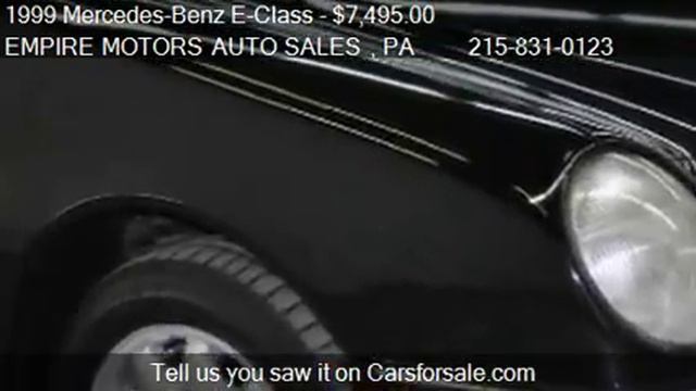 EMPIRE MOTORS AUTO SALES 4213 FRANKFORD AVE in Philadelphia, PA 19124 Come test drive this 1999 Mercedes-Benz E-Class E300 for sale in Philadelphia, PA. http://www.empiremotorsas.com Option List:ABS Brakes,Air Conditioning,Alloy Wheels,AM/FM Radio,Anti-Brake System: 4-Wheel ABS,Body Style: SEDAN 4-DR,Cargo Volume: 15.30 cu.ft.,Cassette Player,Child Safety Door Locks,Cruise Control,Curb Weight-automatic: 3691 lbs,Driver Airbag,Driver Multi-Adjustable Power Seat,Front Brake Type: Disc,Front Headroom: 37.60 in.,Front Hip Room: 54.90 in.,Front Legroom: 41.30 in.,Front Power Memory Seat,Front Shoulder Room: 56.30 in.,Front Side Airbag,Front Side Airbag with Head Protection,Front Spring Type: Coil,Front Suspension: Ind,Fuel Economy-city: 26 miles/gallon,Fuel Economy-highway: 36 miles/gallon,Full Size Spare Tire,Keyless Entry,Leather Seat,Locking Differential,Overall Height: 56.70 in.,Overall Length: 189.40 in.,Overall Width: 70.80 in.,Passenger Airbag,Passenger Multi-Adjustable Power Seat,Passenger Volume: 95.00 cu.ft.,Power Door Locks,Power Windows,Rear Brake Type: Disc,Rear Headroom: 37.20 in.,Rear Hip Room: 55.90 in.,Rear Legroom: 36.10 in.,Rear Shoulder Room: 57.10 in.,Rear Spring Type: Coil,Rear Suspension: Ind,Rear Window Defogger,Second Row Side Airbag,Second Row Side Airbag with Head Protection,Separate Driver/Front Passenger Climate Controls,Standard Seating: 5,Steering Type: RandP,Tachometer,Tank: 21.10 gallon,Telescopic Steering Column,Tilt Steering,Tilt Steering Column,Tires: 215/55R16,Track Front: 60.20 in.,Track Rear: 59.90 in.,Traction Control,Turning Diameter: 37.10 in.,Wheelbase: 111.50 in. Provided by Carsforsale.com http://video.carsforsale.com/vehiclevideo.aspx?vid=200554667