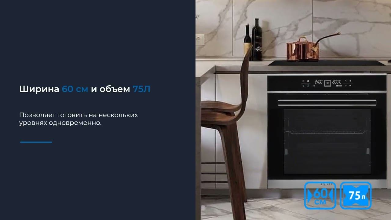 Встраиваемый электрический духовой шкаф ZUGEL ZOE601X в стильном исполнении из нержавеющей стали сочетает внушительный объем 75 литров с широким функционалом. Он оснащён 9 режимами приготовления, включая гриль, конвекцию и специальный режим для пиццы, позволяя экспериментировать с различными блюдами. Инновационная система 3D-нагрева с конвекцией гарантирует равномерное приготовление, а встроенный термощуп контролирует степень готовности блюд. Эргономичная конструкция отличается продуманной безопасностью – тройное остекление дверцы защищает от ожогов, функция защиты от детей предотвращает нежелательный доступ. Каталитическая очистка и съёмные дверные стекла обеспечивают простой уход. Энергоэффективность класса А, широкие функциональные возможности и элегантный дизайн делают духовой шкаф ZUGEL ZOE601X превосходным выбором для современных кухонь. Подробнее на официальном сайте: https://zugel.ru