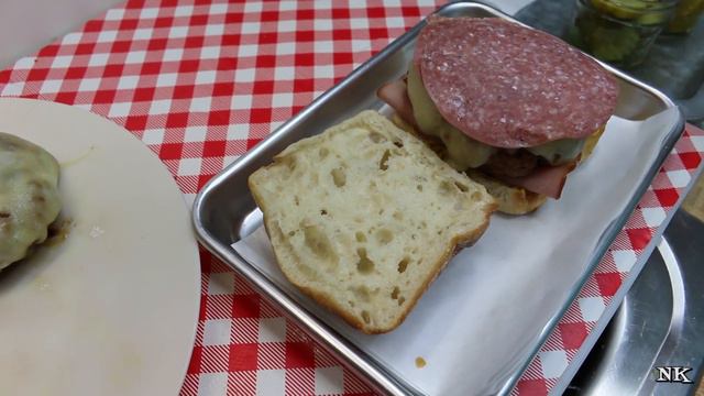 Today I am sharing with you, my burger inspired by the Tampa style Cubano sandwich. This is not only delicious, but has a rich history associated with it. Do not be mistaken. The Cuban is 100% American, created by Cuban immigrants who served sandwiches to an amazing melting pot of people during the turn of the century in Florida's booming cigar industry. This burger is inspired by that sandwich. It's humble roots are a history lesson for us all. The flavor will not be forgotten and you are just going to love it! To give you a bit of background, the Cubano sandwich is something that hailed from Cuban tradition. While they did not have pork until the Spaniards introduced it to their culture, they used fish and fowl. When pork and ham made an appearance it was enthusiastically substituted. The tobacco, grown in Cuba was shipped to Florida where there were over 100 cigar factories at the turn of the century around the early 1900s. A melting pot of immigrants from Cuba, Spain, Italy, Germany and other places converged to work and make cigars. They needed inexpensive food and the Cubano sandwich was born. The sandwich is layers of ham, shredded mojo pork, Swiss cheese, and if you are in Tampa, Genoa salami topped with dill pickles and spread with yellow mustard. The soft bun is then pressed and grilled,much like a panini and enjoyed. I have taken my inspiration for my burger from this sandwich. I had no idea about the history until I started researching it. This is what I love about food. Not only does it feed the body, it feeds the mind and the soul. My burger starts with a pork burger patty, seasoned with my Mojo seasoning rub and pan fried. I melted the Swiss cheese on top. Since I could not find Cuban bread, I used a Ciabatta bun. Maybe not a great substitute for the Casave bread and it's tart flavor, but it is what I had. I layered a slice of ham then the burger, then salami, pickles and spread the bun top and bottom with a generous amount of yellow mustard. On the surface, you may think, like my girls and my Dad did, that this sounds odd, but trust me this thing is DELICIOUS! Seriously satisfying and rich and full of flavor! I will leave you with this, when asked to demonstrate the Cubano, one woman, who's grandfather is know to have created it in America, said this about the sandwich: The bread and the mojo pork represented the Cubans The ham represented the Spaniards The Salami represented the Italians The Swiss cheese melted all the cultures together The mustard and pickles represented the Germans. No matter where you hail from, you need to try this burger or a Cubano sandwich! When you do, remember what I have shared because when you bite into it, you are not just eating a sandwich, you are enjoying a piece of history and rich cultural heritage! I hope you give this burger a try sometime soon and I hope you love it! Happy Eating! Get my cookbooks here: http://bit.ly/1czqM5R Business Inquiries can be sent to: info@noreenskitchen.com Check me out on social media! Facebook: http://on.fb.me/12bdibt Twitter: @noreenskitchen Instagram: http://bit.ly/12bdqrp Google + http://bit.ly/1o5GMYy ***MAILING ADDRESS**** Noreen's Kitchen PO Box 14173 New Bern, NC 28561 Have a question for me? Send me an email: info@noreenskitchen.com Noreen's Kitchen Community Guidelines (The Rules) http://bit.ly/2i7VocU Any links to Amazon are, in many cases, affiliate links. Produced by Noreen's Kitchen ©2008-2016 all rights reserved All embeds must live link to Noreen's Kitchen channel. No Editorial Excerpts without permission, Violators agree to pay $5,000 per second + $10 per view + all collections & lawyers fees.