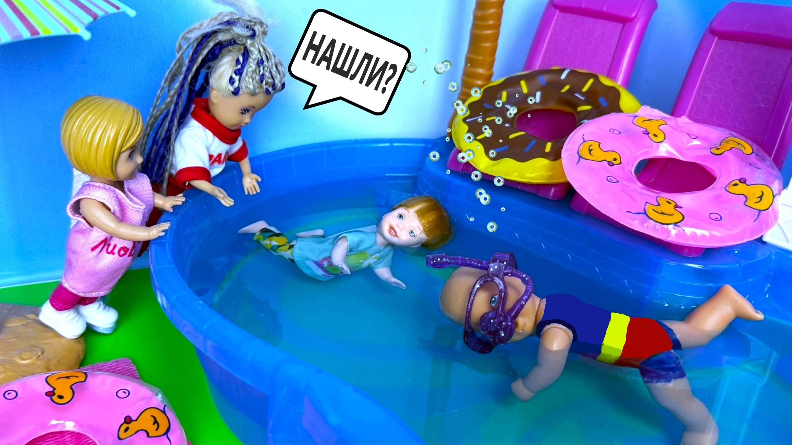 В БАССЕЙН НЫРЯЛИ💦, ТАБА ЛАПКИ ПОТЕРЯЛИ Катя и Макс веселая семейка! Куклы Барби истории ДАРИНЕЛКА