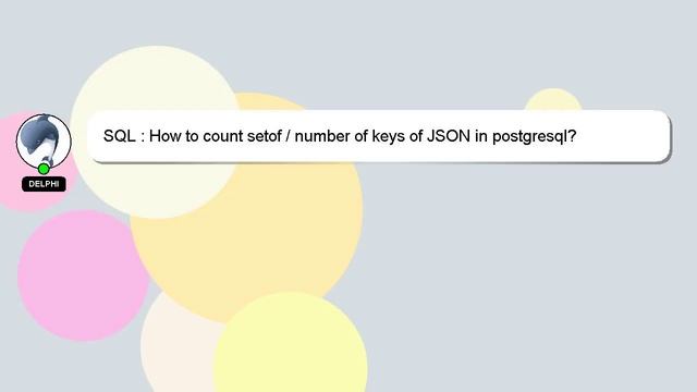 SQL : How to count setof / number of keys of JSON in postgresql? To Access My Live Chat Page, On Google, Search for "hows tech developer connect" As promised, I'm going to share a hidden feature with you. This is a YouTube's feature which works on Desktop. First, Make sure this video is playing. Then, type the letters 'awesome' on the keyboard. Your YouTube progress bar will transform into a flashing rainbow. Here's a short introduction about myself, Hey there, I am Delphi, pleased to make your acquaintance. I help you answer your questions. SQL : How to count setof / number of keys of JSON in postgresql? Let me know if you have more specific questions or concerns by leaving a comment or starting a chat. We welcome your thoughts and feedback, so please comment below with your answer or insights to the answer. Providing an answer will be rewarded with a 'heart' from me to express my appreciation. JSON in : postgresql? setof SQL of How to of count number keys /