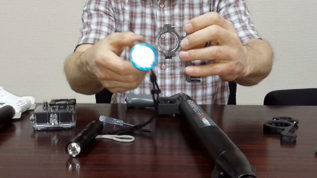 Различные модификации креплений для видеокамеры и фонаря на ружье для подводной охоты