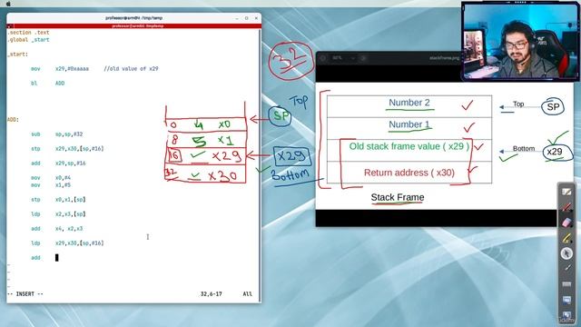 11.6 -An example of stack frame creation in arm assembly