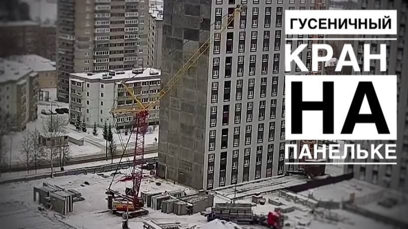 Гусеничный кран строит панельку!