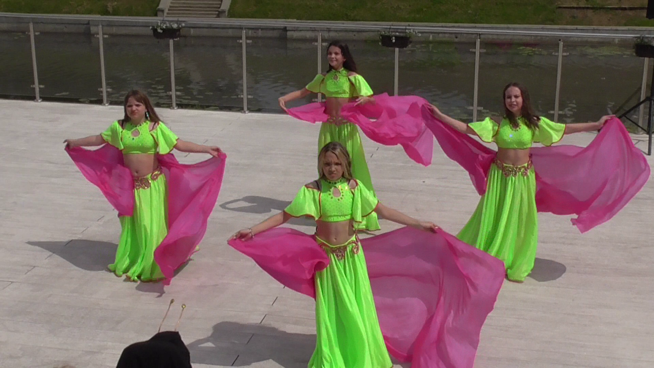 Четыре девушки танцуют восточный танец