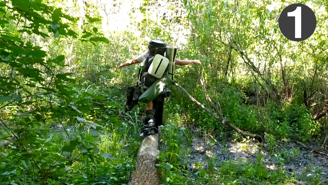 1. Поход в дикий лес с Кирюхой и Димой. Заброска. Эксперимент с переправой провален