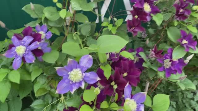 Клематис Блю лайт в компании роз, только раскрылись!