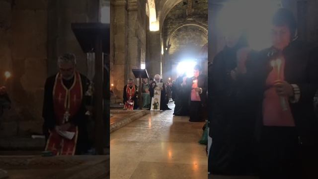 Служба перед каменной базиликой Двенадцати апостолов над могилой святой Сидонии, отошедшей с хитоно
