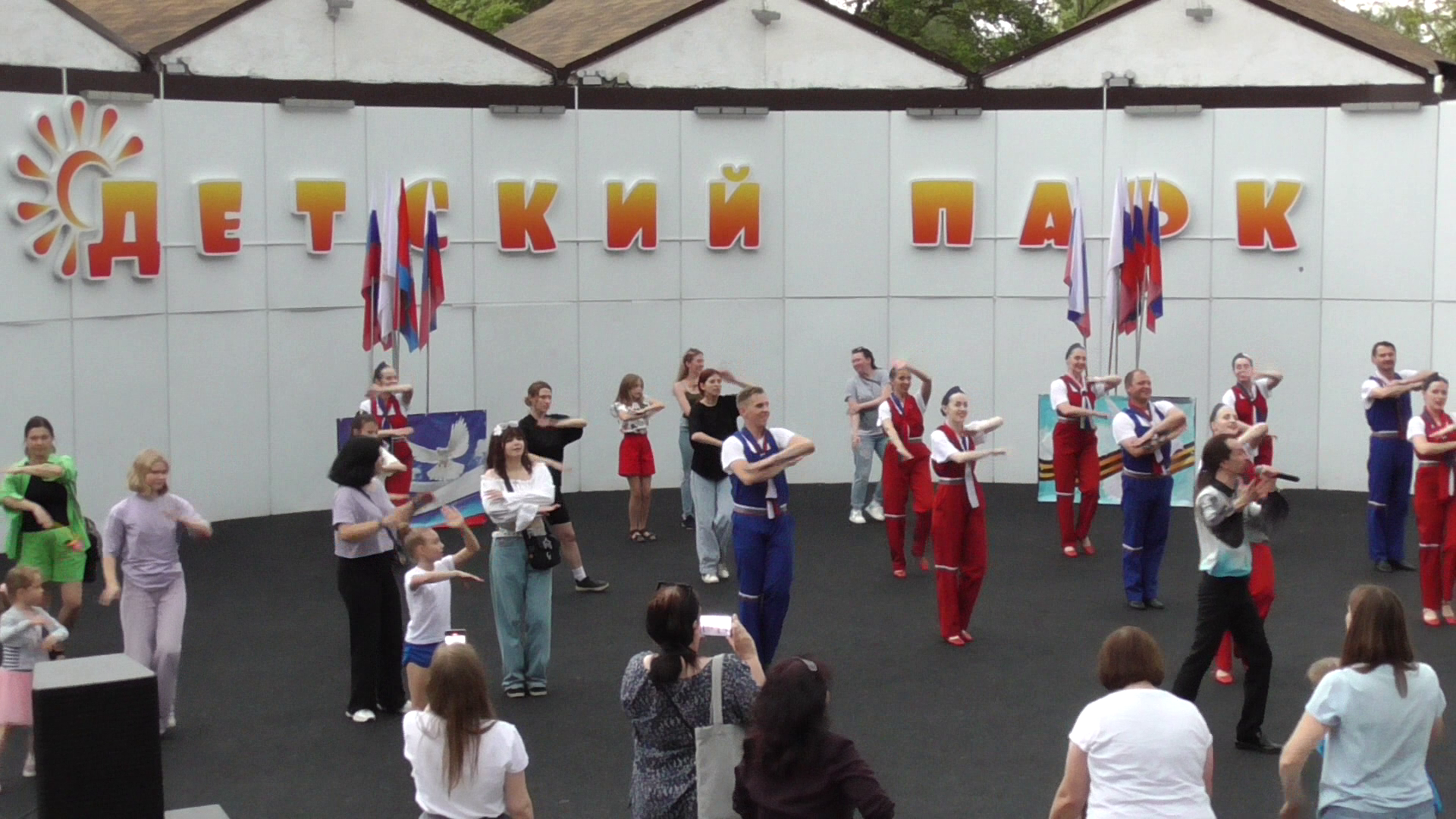 Люди на сцене танцуют. Песня: Родина моя. Детский парк