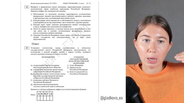 Демонстрационный вариант ЕГЭ-2026 по обществознанию. Еще больше полезного контента на моем канале: https://t.me/gladkova_ea