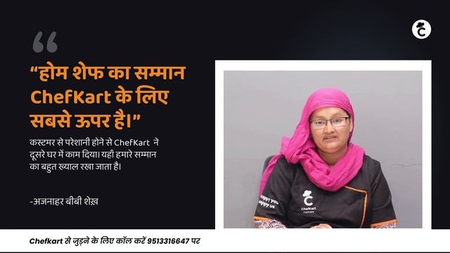We take pride in our partners and are happy to present the true ‘Pillars of ChefKart.’ Here is the story of Ajnahar Bibi Sekh, one of our Popular Home chefs… ChefKart is driven to upskilling its partners to provide its customers with the best at-home cooking services. In order to do so, we conduct regular training sessions. There are three verticals of training: cooking skills, behavioural soft & technological advancement. We aim to increase tech adoption among our partners to provide the best professional services. About the Company: Founded in 2020, ChefKart is a company that connects professionally trained and verified home chefs to households seamlessly by building an ecosystem. We provide at-home cooking services in Gurgaon on a monthly subscription basis. Our professionals are handpicked to serve you hygienic and wholesome food catered to your taste! Our prices are based on the number of people, meals, and cuisine preferences. To know more about our plans and services, please visit our website: www.thechefkart.com. You can follow us on social media: https://www.instagram.com/thechefkart/ https://www.facebook.com/thechefkart