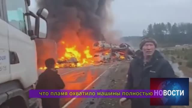 В Иркутской области в массовой аварии сгорели грузовики и легковушка