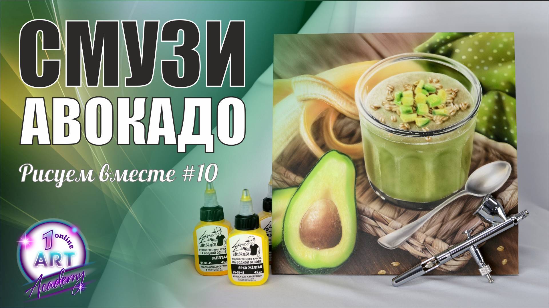 Друзья, всем привет! Сегодняшняя самостоятельная работа - это смузи из авакадо. Вы можете выбрать любой из четырех вариантов. Это очередная работа для улучшения Вашего навыка владения аэрографом, в которой Вам предстоит поработать над мелочами и текстурами. Используйте вспомогательные инструменты: ластики, лезвия, трафареты. Постарайтесь сделать как можно больше деталей. Мелочи ничего не решают, они решают все! Отслеживайте свои слабые места и прорабатывайте их. Исходники и дополнительные материалы у нас на сайте: https://1onlineartacademy.com/blog/706336 ПРИНЯТЬ УЧАСТИЕ В РИСУЕМ ВМЕСТЕ: ******************************************** Мы приглашаем всех желающих принять участие в нашем проекте, неважно где и когда Вы научились рисовать аэрографом, давайте рисовать вместе. Подробности на нашем сайте: https://1onlineartacademy.com/blog/667720 ******************************************** НАШ МАГАЗИН: -------------------------------------------- Все для аэрографии: https://1onlineartacademy.com/ru_store-all-0 -------------------------------------------- Горячие ссылки: --- Инструкция для новичков: https://1onlineartacademy.com/ru_stepwizard Инстаграм: http://instagram.com/art_bright_studio/ VK: http://vk.com/artbri FB: http://www.facebook.com/1OnlineArtAcademy --- Сайт Арт Академии: http://www.1OnlineArtAcademy.com/ Задайте свой вопрос на сайте или по телефонам: 8 (800) 707-59-13, +7 (495) 123-37-55