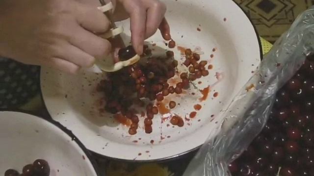 Удалить косточки из вишни помогает простой инструмент для выдавливания косточек из ягод, надевается на пальцы. И так можно по быстрому очистить вишню от косточек для вареников. Старенький советский инструмент - вишнечистка, очень удобно.