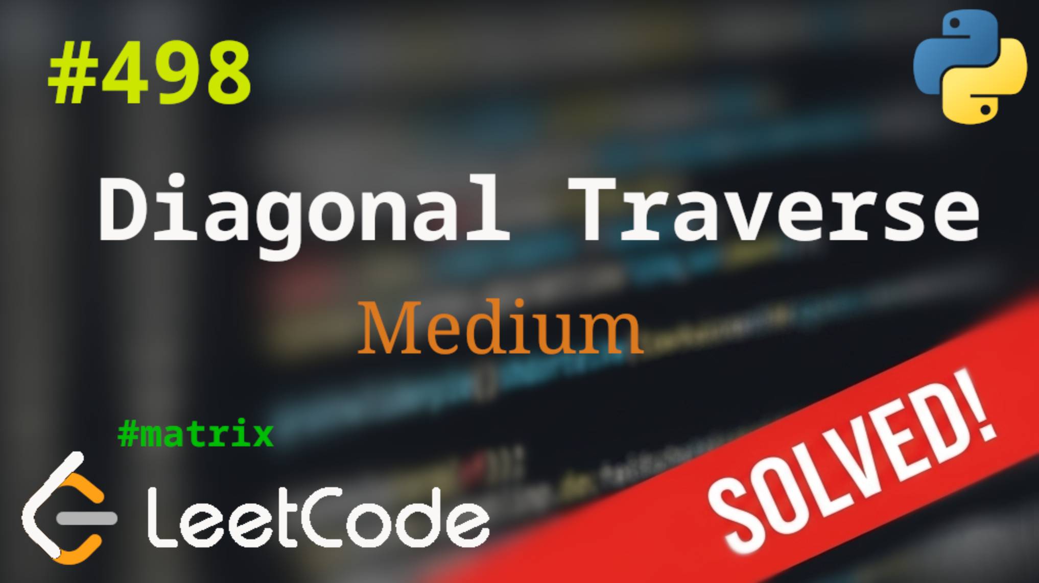 Подробное решение задачи Diagonal Traverse на языке программирования Python. Telegram: https://t.me/LeetCult #leetcode #algorithms #python #leetcodepython #programming #education #matrix
