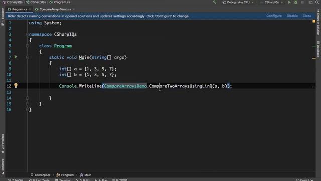 4 Compare Two Arrays using LINQ in C# | SequenceEqual - C# Interview Questions