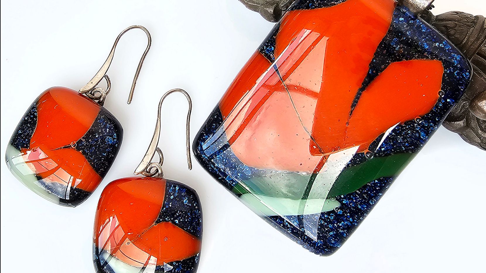 красные маки сверкающее стекло женские украшения кулон и серьги крупные