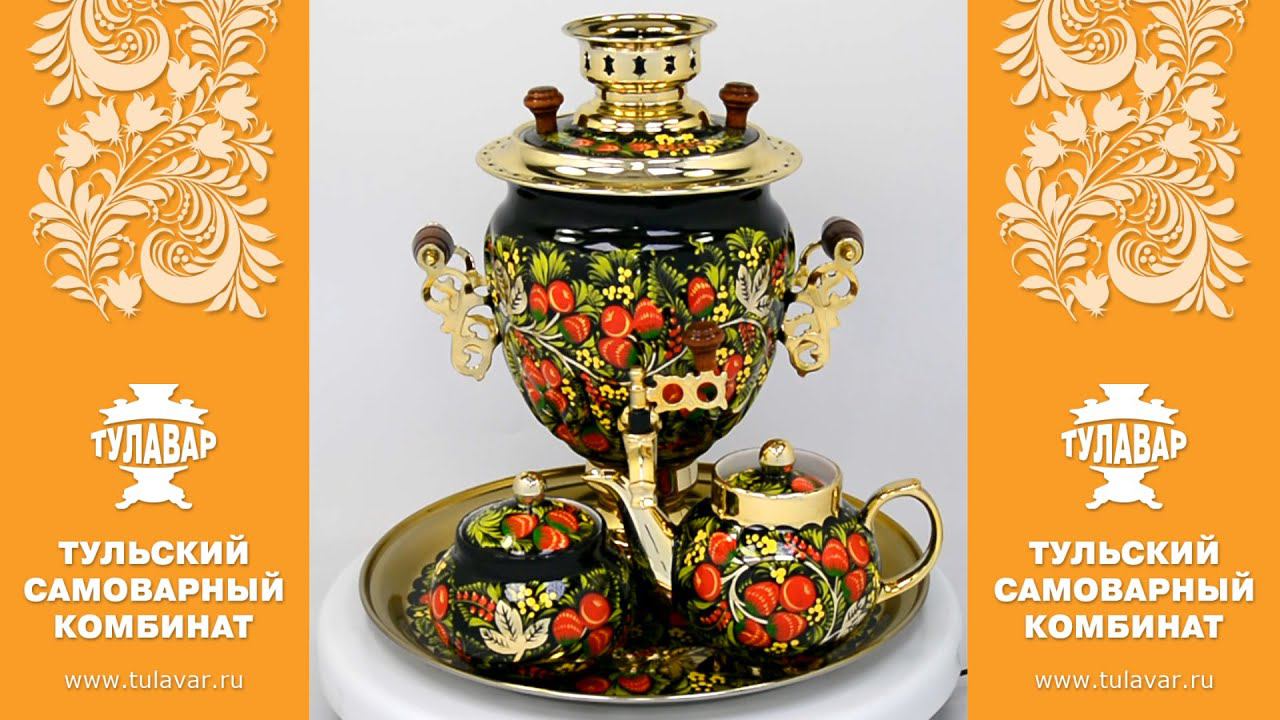 Обзор электрического тульского самовара в наборе «Лесная клубника». Описание самовара в оригинальном каталоге на сайте https://tulavar.ru/catalog/raspisnye/hohloma/1755.html