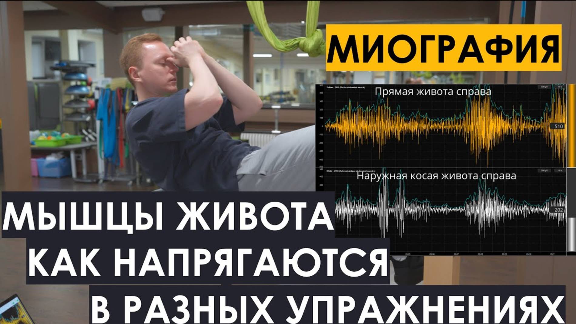 Как напрягается пресс в разных упражнениях. Миограф