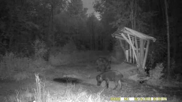 Кабаны на кормушке, запечатлённые фото ловушкой. Часть № 30