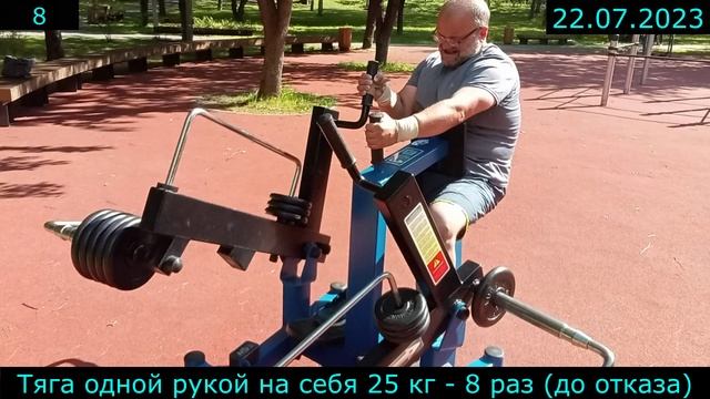 22.07.2023 - Тяга одной рукой на себя 25 кг - 8 раз (до отказа)