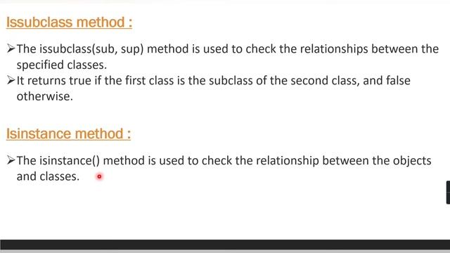 Python Inbuilt Functions - IsSubclass & IsInstance method | IsSubclass() | IsInstance | Inheritance #python #pythonprogramming #pythontutorial #issubclass #isinstance object oriented programming in python Python Course Introduction | Python For Beginners : Learn Python programming right from the fundamentals in a fun and easy way. If you are a beginner and want to learn Python, then this entire video series is exactly for you. In this complete Python for beginners series you will learn - 1. The core Basics & Fundamentals of Python 2. Syntax & Features of Python 3. Live Python coding and Examples Your Queries- issubclass function in python IsInstance function in python inheritance in python multiple inheritance in python multilevel inheritance in python @codecrush