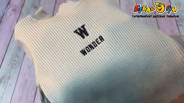329664 Водолазка Lanson Kids в рубчик с высоким воротником и надписью бежевая