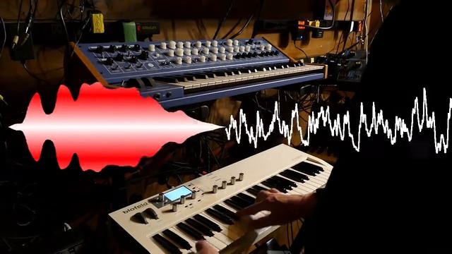 Osc1 is a 8' sawtooth routes to filter 1 Osc2 is a 8' triangle wave routed to filter 2 Both filters are 12db Low Pass, with 42 resonance Filter 2 gets the filter envelope, but Filter 1 only gets a modifier which is Velocity mapped to lagged Envelope 3. Bottom line this forms a velocity switch/split where when I play softly I get a triangle wave mainly, but when I hit it hard I get a sawtooth. Both filter panned to unisono set to 3. With another modifier I split out the middle channel and apply Osc1 FM to noise, which is triggered the harder I hit the keys and only on the sawtooth Filter 1 has -50% keytracking and Filter 2 has +50% keytracking to favor the sawtooth on the lower register but the triangle on the higher Backed up on a "poor man's Moog" the Vermona '14, set to PWM and subs 100% keytracking and 18db LPF.