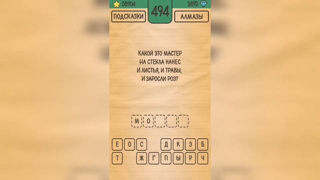 Как пройти Загадки Ребусы Шарады, ответы, решение раздел Загадка Уровень 494 Какой это мастер на стекла нанес и листья, и травы, и заросли роз? Привет, ребята! Пожалуйста, поддержите канал лайком ? и подпиской ? Напишите, какие игры вам ещё интересны. И я постараюсь пройти их для вас ?