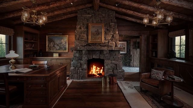 Уютное видео: домик с камином, дождь, гроза.