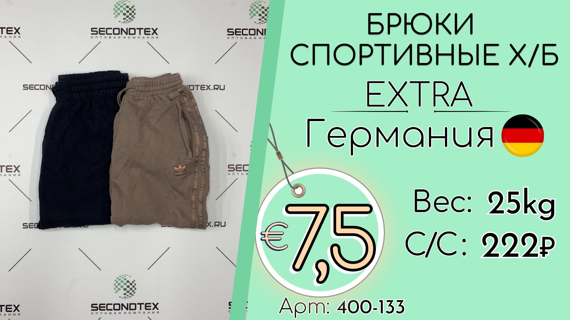 Страна: Германия Вес мешка: 25 кг Цена за кг: Евро 6,5 / Рубли 605 Цена за мешок: 15 113 руб. Себестоимость одной вещи: 222 руб. Кол-во штук: 68 шт. ____ 💰 Курс на дату съемки (11.12.2025): €1 = 93 Руб. (при наличных и безналичных платежах) 💳 €1 = 93 Руб. (при безналичной форме оплаты на р/с) Связаться с нами: +7(916)779-79-79 (WhatsApp, Telegram) Наш сайт: https://secondtex.ru Мы в Телеграм: https://t.me/secondtexopt Мы ВКонтакте: https://vk.com/secondtex