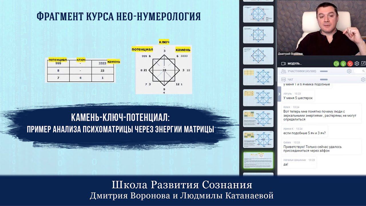 Число рождения определяет связку камень-ключ-потенциал в психоматрице человека. На курсе Нео-нумерология. Путь Мастера на пакете "консультант" мы проходим данную тему. И в этом видео Дмитрий Воронов показывает и объясняет, как связаны энергии зеркальной матрицы судьбы и нумерологической психоматрицы. Подробнее о курсе: https://numerologia-master.matrizasudba.com/ --- Пройдите бесплатный вводный курс: https://matrizasudba.com/vk/vvodniykurs2 Все курсы нашей Школы: https://vsekursi.matrizasudba.com Наш официальный сайт: https://matrizasudba.com/ Школа Развития Сознания Дмитрий Воронов и Людмила Катанаева. Зеркальная Матрица Судьбы и Нео-нумерология. Камень-ключ-потенциал: пример анализа психоматрицы (фрагмент курса Нео-нумерология) #развитиесознания #школаразвитиясознания #матрицасудьбы #нумерология #дмитрийворонов #предназначение #таро #22энергии #зеркальнаяматрица #дмитрийворонов #неонумерология --- Подписывайтесь и рекомендуйте друзьям канал - Нумерология и Матрица Судьбы по дате рождения - https://www.youtube.com/channel/UCHhinOxp_rzYEotnGuwKUdQ?sub_confirmation=1 - и вы узнаете все, что вы хотели узнать о себе, о законах Вселенной, методах и практиках духовного самопознания и психологии. А также поделись этим видео с друзьями Загляните на Facebook https://web.facebook.com/groups/matriza.sudbi Присоединяйтесь в ВК https://vk.com/matriza.sudbi/ Присоединяйтесь в ОК https://ok.ru/matriza.sudbi/ Наш Инстаграмм: https://www.instagram.com/matrizasudba/