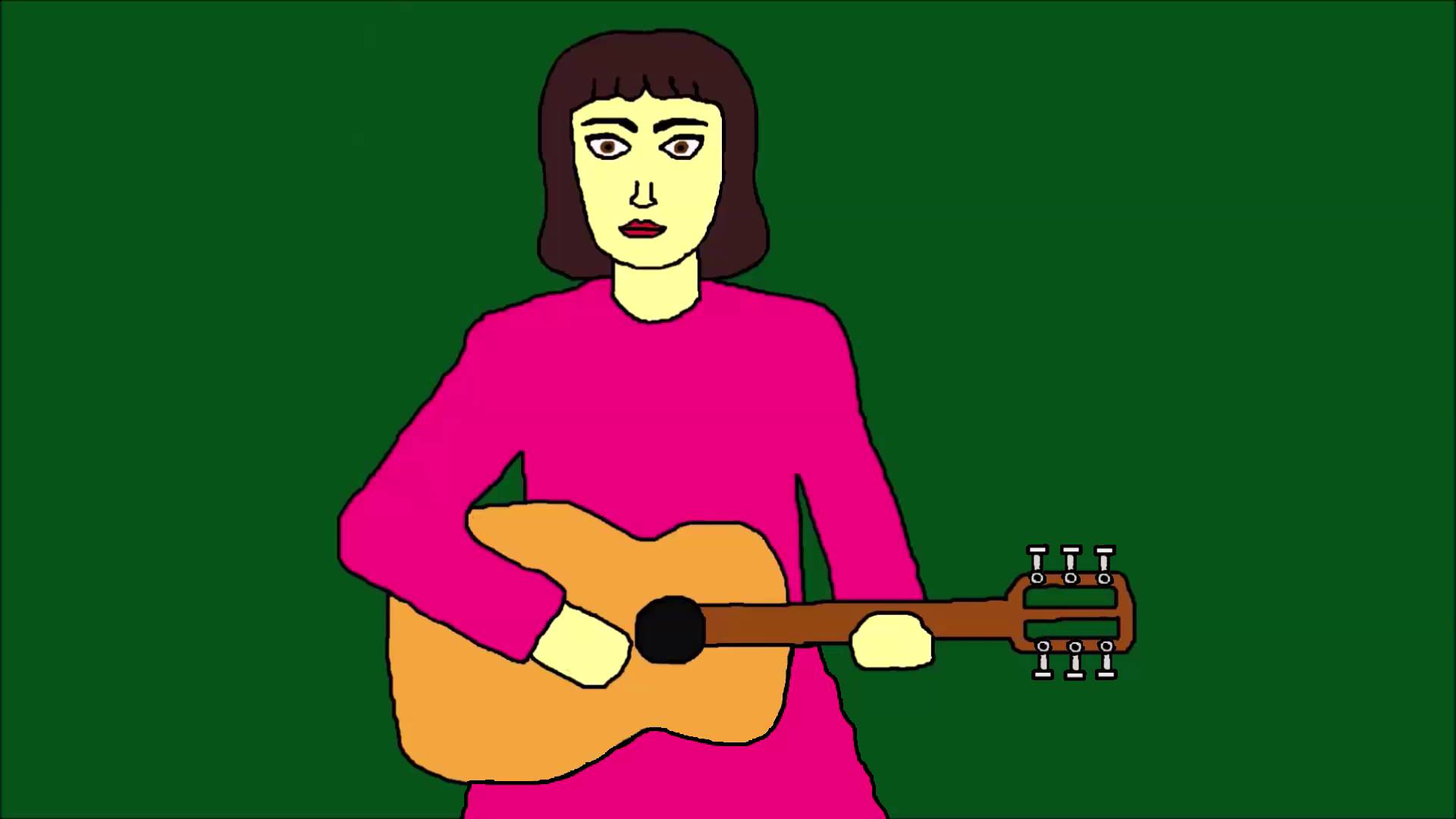 Анимационное видео: Девушка с гитарой на зелёном фоне