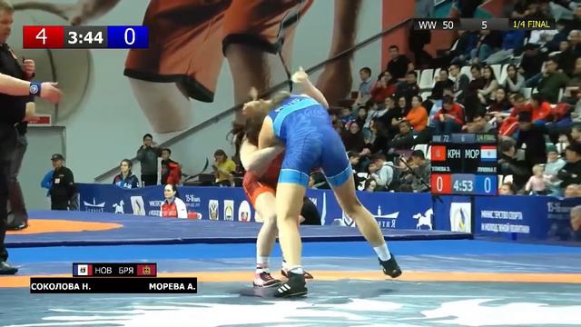 ЧР по вольной борьбе среди женщин. Соколова Н.(НОВ) и Морева А.(БРЯ) - 1/4 финала, 50кг